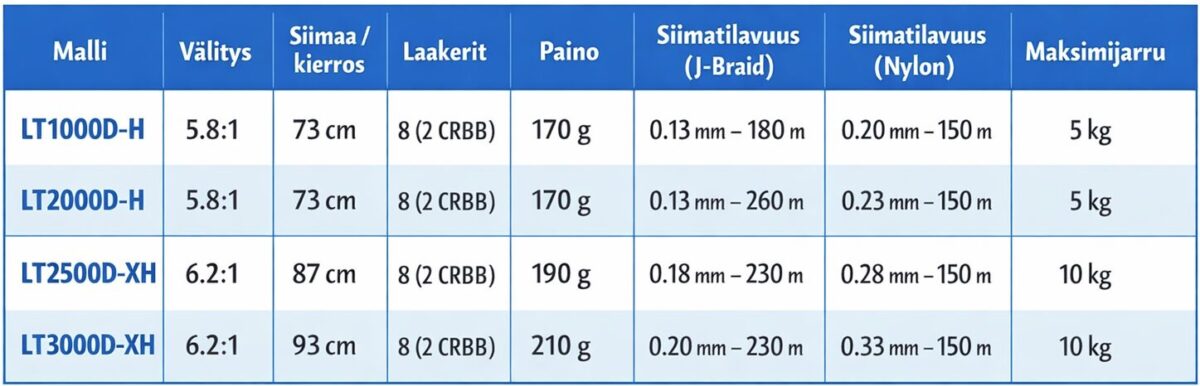 Daiwa 25 Ballistic MQ – Mallit ja tekniset tiedot