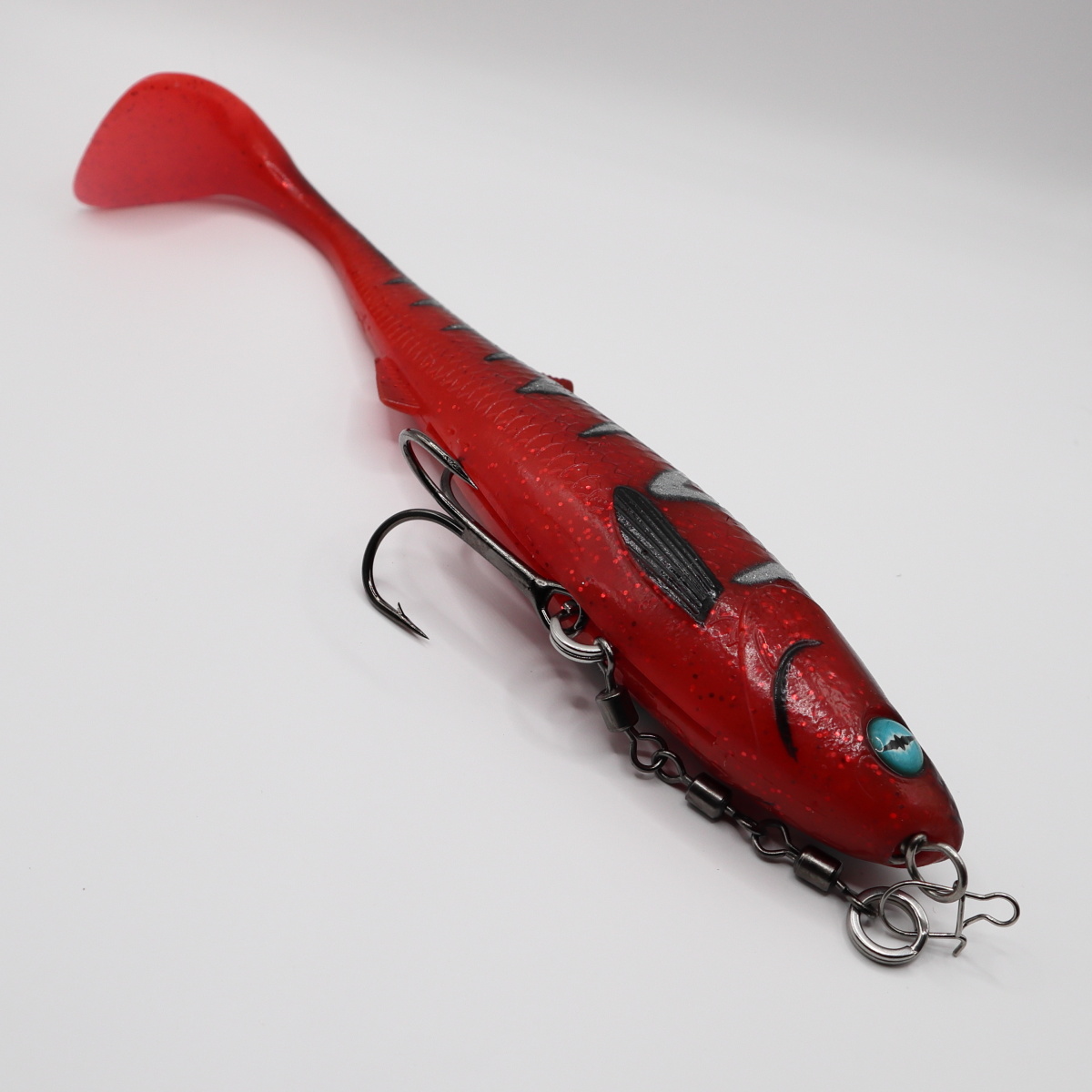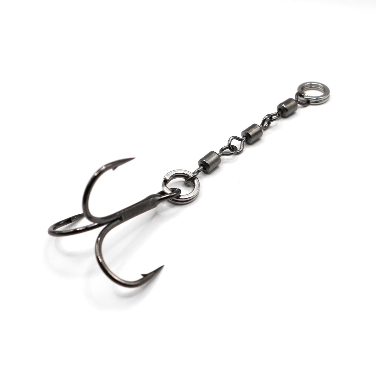 Perinteinen leikaririgi ilman mitään ylimääristä, helppo vaihtaa kumista toiseen. Kolme eri pituutta 2-4 leikaria, sekä 3 eri koukkukokoa #2 – 1/0 – 2/0. Mikäli haluat lisätä pinnin se löytyy tästä. Jigiruuvit löytyvät täältä.