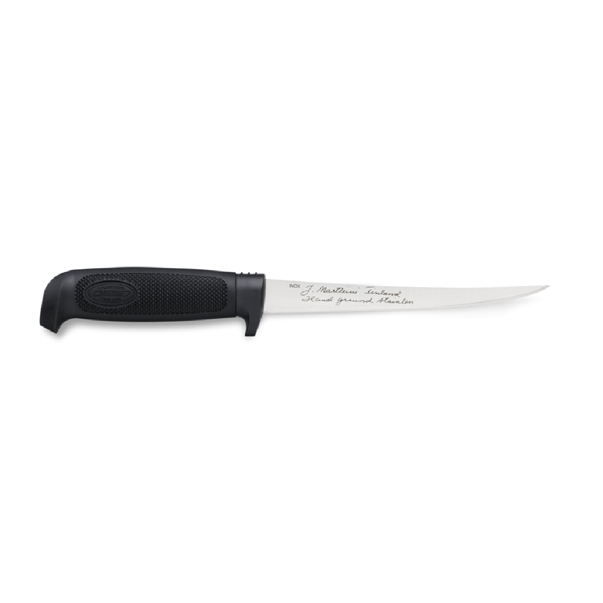Tämä fileointiveitsi on erinomainen valinta jokaiselle, joka haluaa tehdä kalankäsittelystä helpompaa ja tarkempaa. Ergonominen kumikahva tarjoaa pitävän otteen myös märissä olosuhteissa, ja notkea, ruostumattomasta teräksestä valmistettu terä liukuu kalan mukana tuottaen siistit ja ohuet fileet.