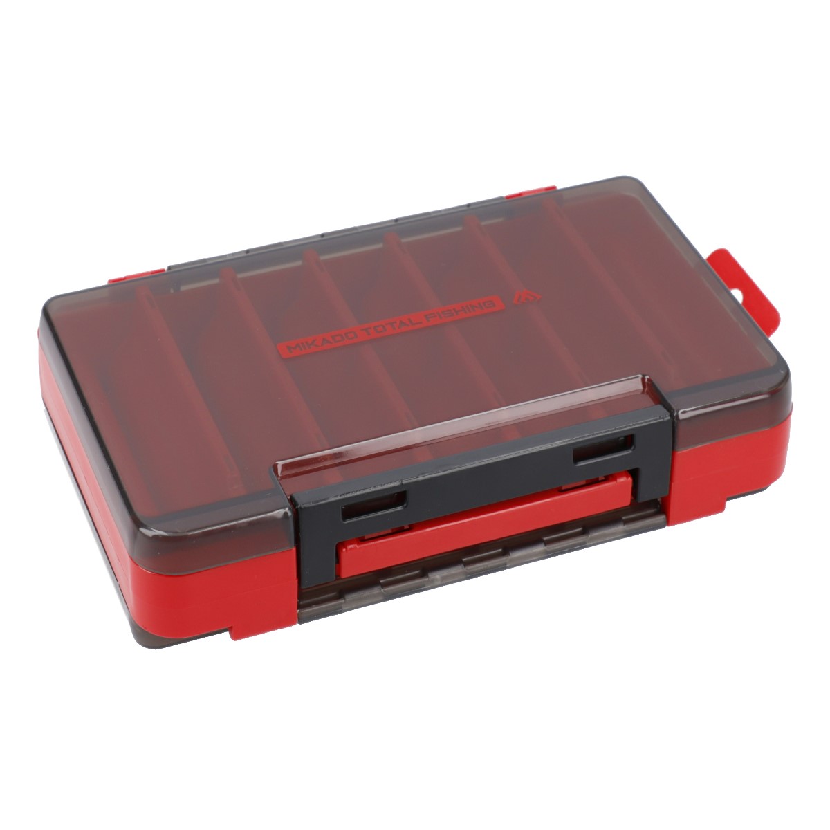 Mikado H1908 on kätevä kaksipuoleinen rasia, jossa on yhteensä 13 lokeroa. Vieheen maksimi pituus noin 11.5 cm, soveltuu hienosti pilkeille tai vaapuille, rasiassa on myös vesireiät jolloin kosteus poistuu.